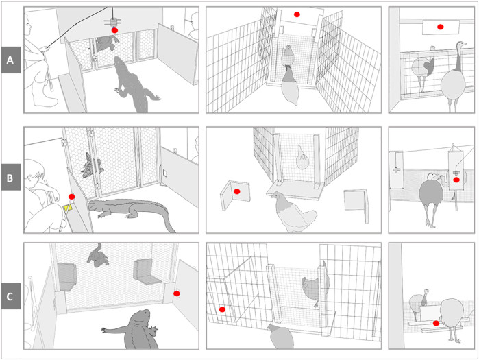 Nun hat ein Forscherteam verschiedene Urkiefervögel (Paläognaten) untersucht. Das sind Vögel, deren Gehirne denen ihrer Vorfahren, den Dinosauriern, am ähnlichsten sind. Zu dieser Unterklasse von Vögeln gehören beispielsweise Laufvögel. Zu den Probanden gehörten zwei große Vogelarten, die australischen Emus (Dromaius novaehollandiae) und die südamerikanischen Nandus (Rhea americana) sowie die zwei kleineren Vogelarten der südamerikanischen Perlsteißhühner (Eudromia elegans) und der im Süd- und Südostasien beheimaten Bankivahühner (Gallus gallus). Insgesamt waren es 30 Probanden.