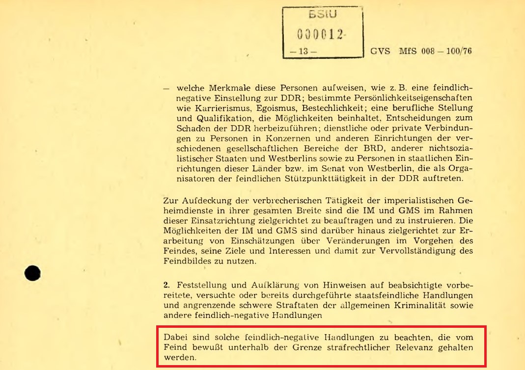 den Gedanken des MfS aus der Richtlinie zur Entwicklung und Bearbeitung operativer Vorgänge GVS Mfs 008 - 100/76 wiederbelebte, den man damals so formulierte: