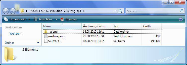 Danach von der supercard.sc die DSONEi_SDHC_Evolution_V1.0_eng_sp5 runtergeladen und auf die MicroSD kopiert (war ein Ordner _dsone und eine Datei SCFW.SC)